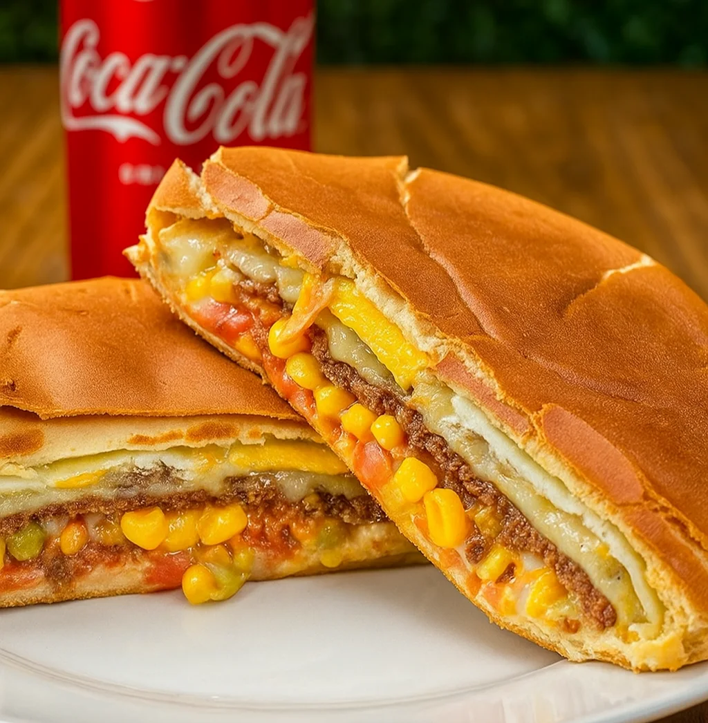 Hambúrguer, Calabresa, Queijo Muçarela, Ovo, Maionese Caseira, Ketchup, Ervilha, Milho, Tomate.